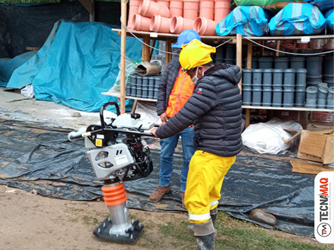 Entrega técnica de Vibroapisonador Multiquip modelo MTX60HD para un rendimiento de compactación excepcional en obra de saneamiento, los equipos fueron calibrados para trabajar sobre 3200 msnm.